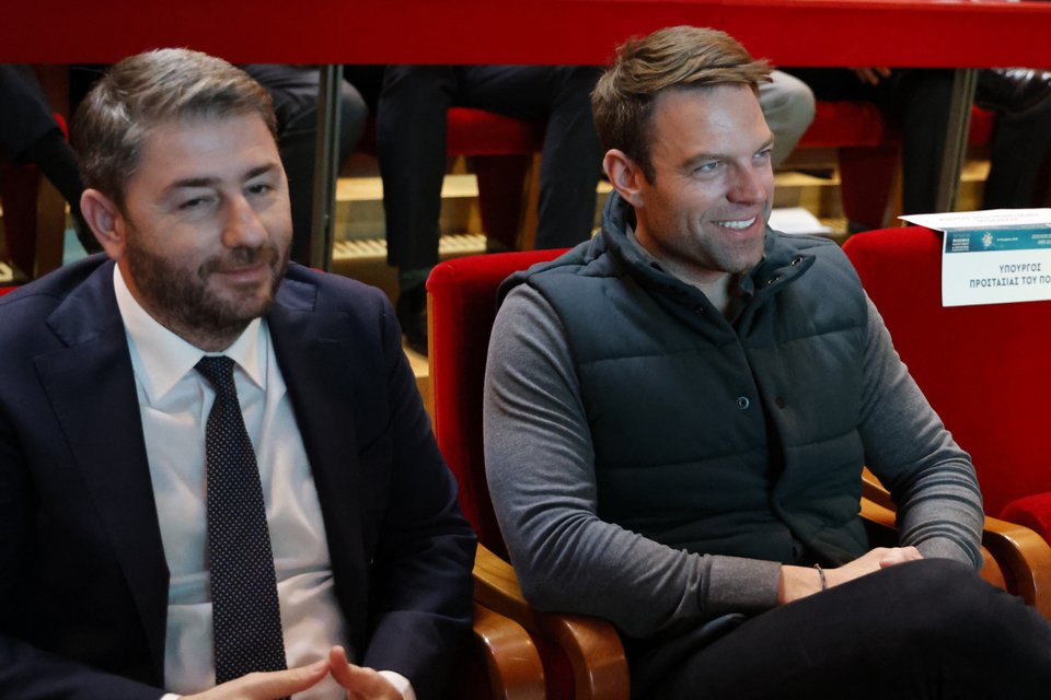 Ο πρόεδρος του ΣΥΡΙΖΑ-Προοδευτική Συμμαχία και ο πρόεδρος του ΠΑΣΟΚ-ΚΙΝΑΛ χαιρετήθηκαν διά χειραψίας και κάθισαν δίπλα-δίπλα.