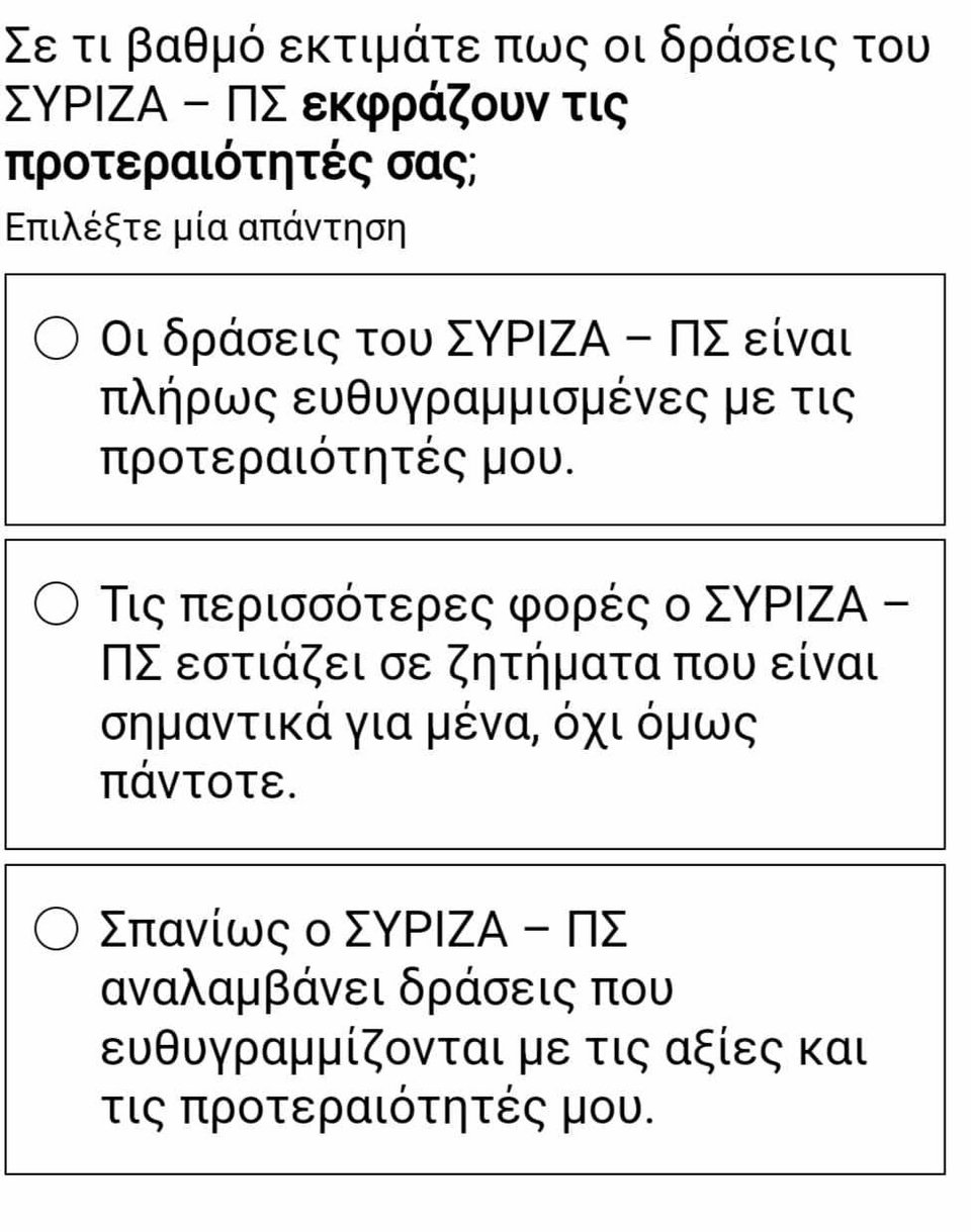 - Σε τι βαθμό εκτιμάτε πως οι δράσεις του ΣΥΡΙΖΑ – ΠΣ εκφράζουν τις προτεραιότητές σας;