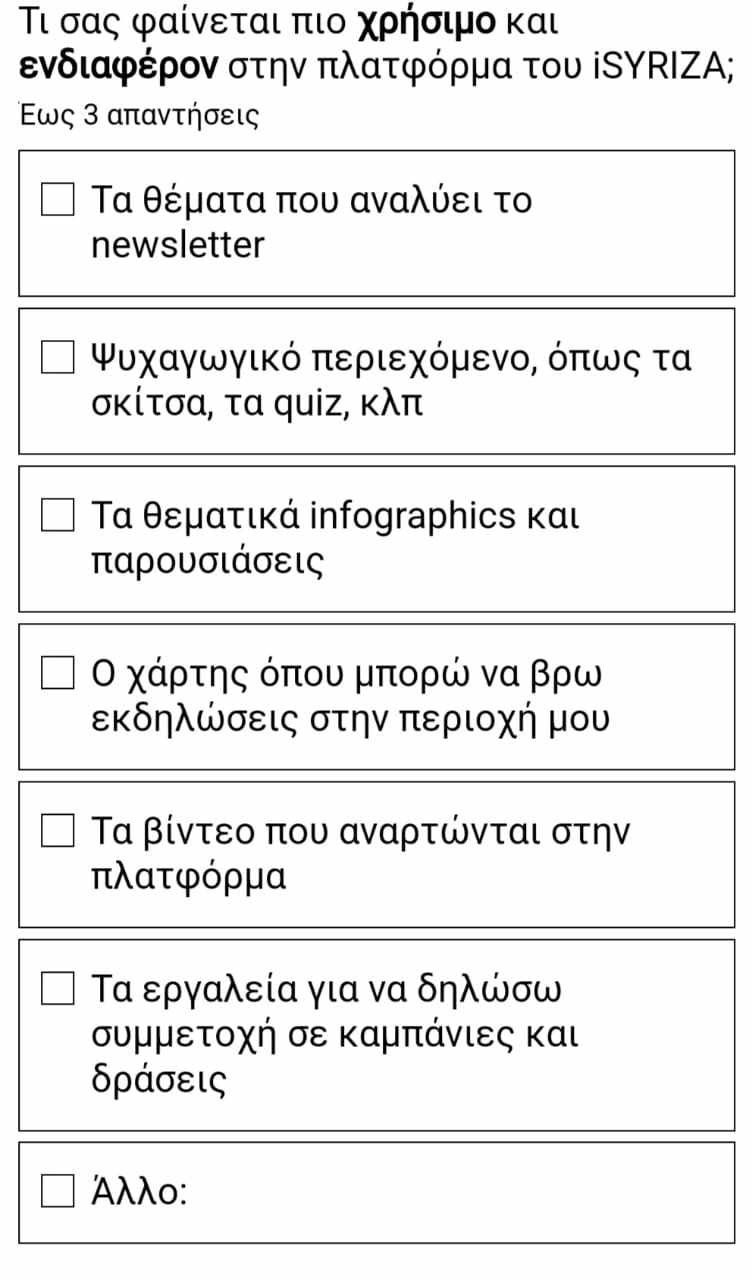 - Τι σας φαίνεται πιο χρήσιμο και ενδιαφέρον στην πλατφόρμα του iSYRIZA;