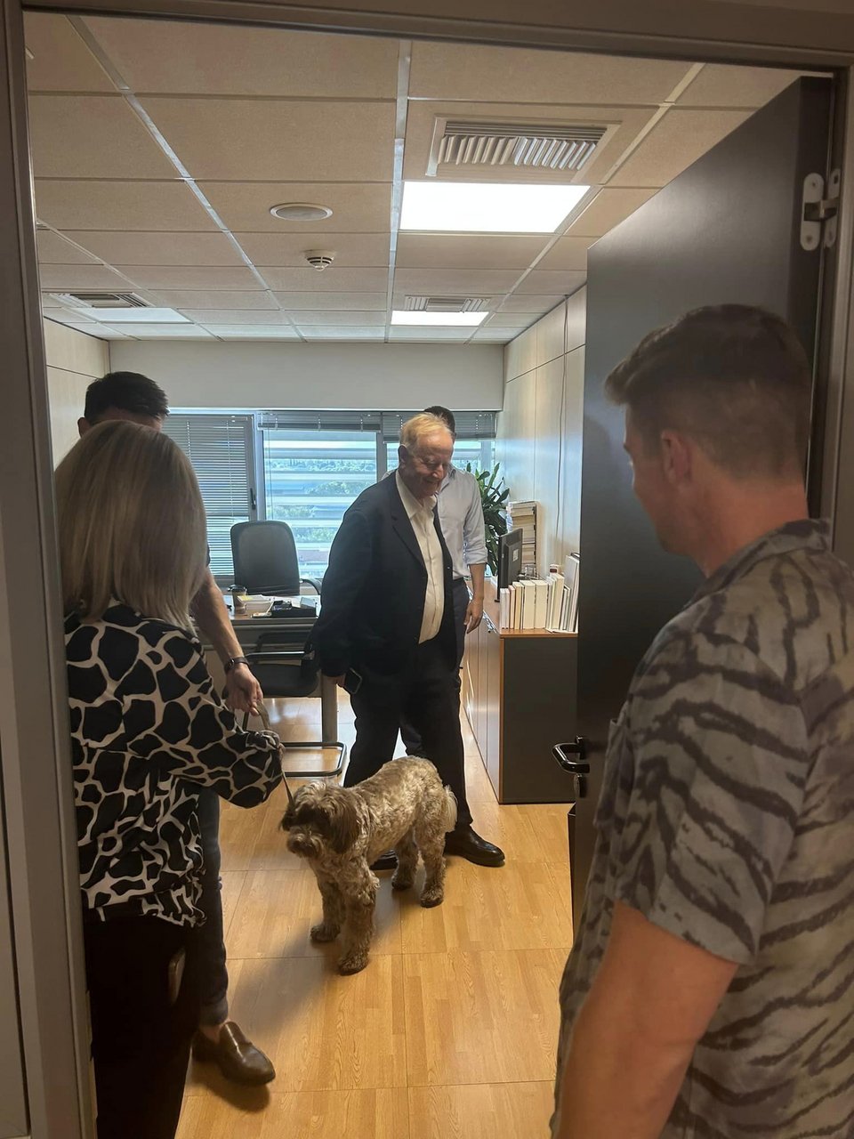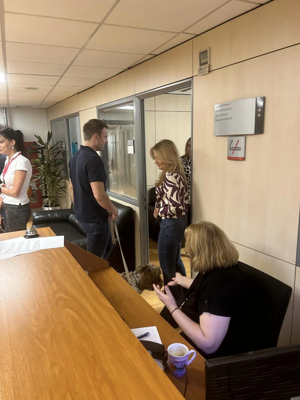 Ο Στέφανος Κασσελάκης επισκέφθηκε τα γραφεία του τηλεοπτικού σταθμού Alpha, μαζί με τον σύντροφό του, Τάιλερ, και τον πατέρα του. Φυσικά, μαζί με τον νέο πρόεδρο του ΣΥΡΙΖΑ ήταν και η σκυλίτσα του, η Φάρλι.
