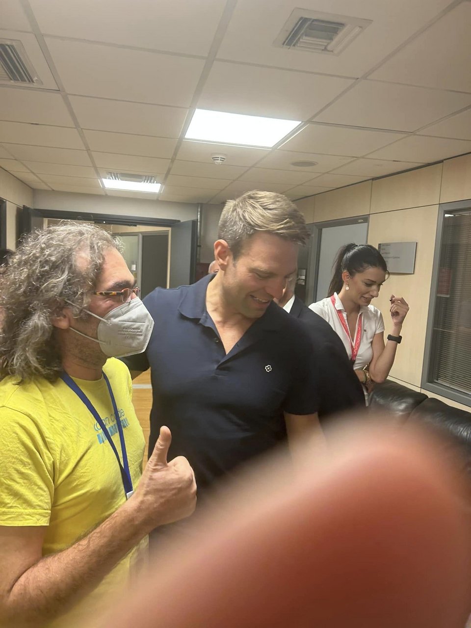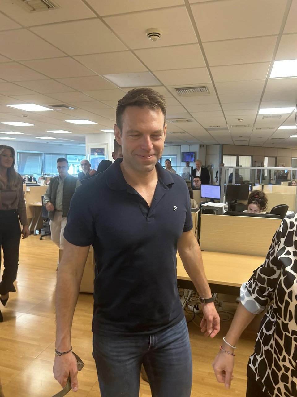 Πηγαίνοντας στον Star για τη συνέντευξη, στα γραφεία στην Κάτω Κηφισιά, ο Στέφανος Κασσελάκης πέρασε από τον Alpha για να χαιρετήσει τους δημοσιογράφους και τους αρχισυντάκτες.