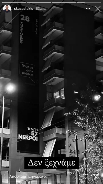 Ο Στέφανος Κασσελάκης σε story στο instagram ανήρτησε το πανό, γράφοντας «δεν ξεχνάμε».