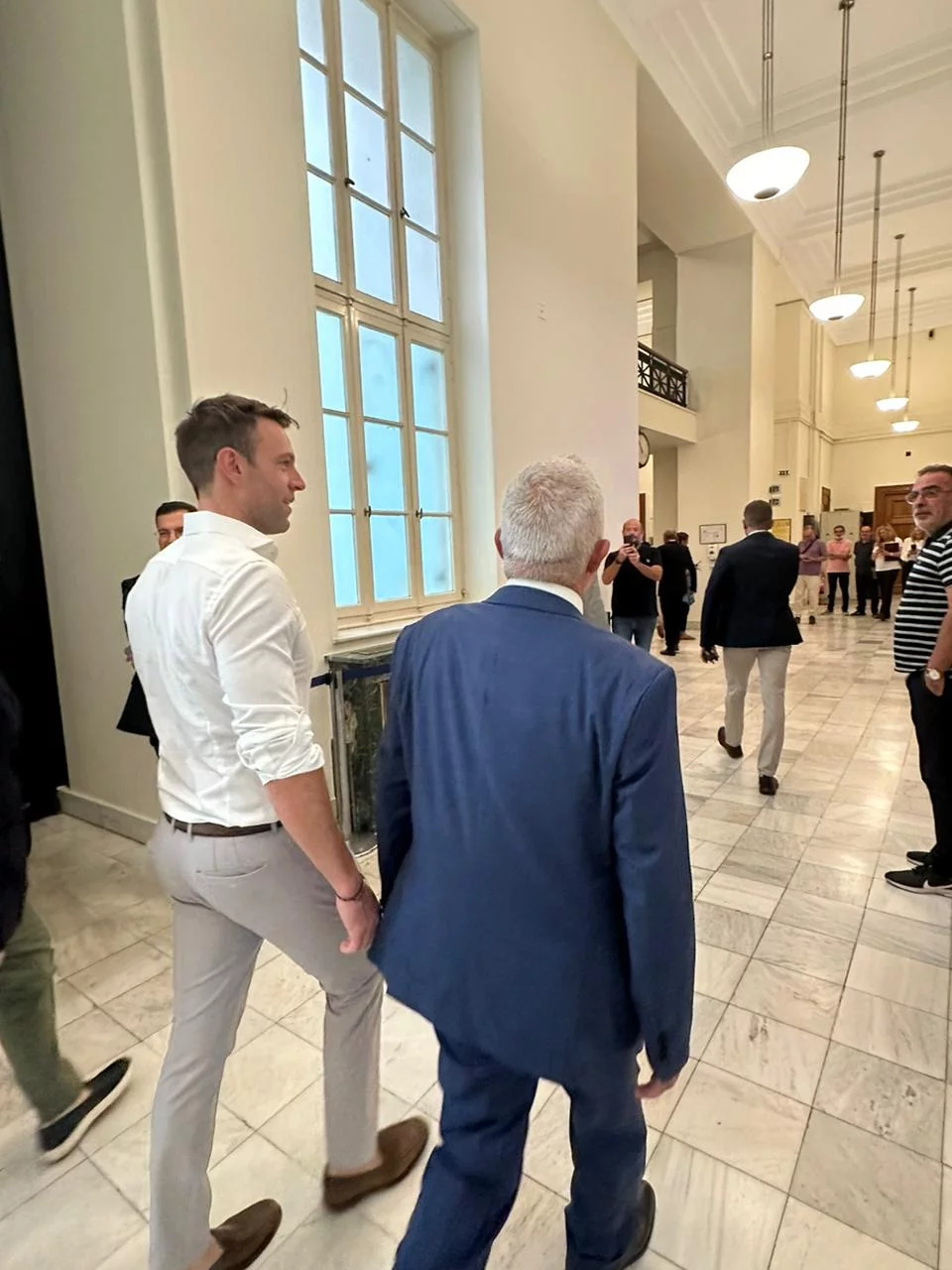 Με την παρουσία των καμερών, ο Αλέξης Τσίπρας και ο Στέφανος Κασσελάκης είχαν τον εξής σύντομο διάλογο: