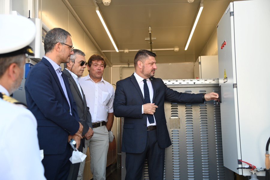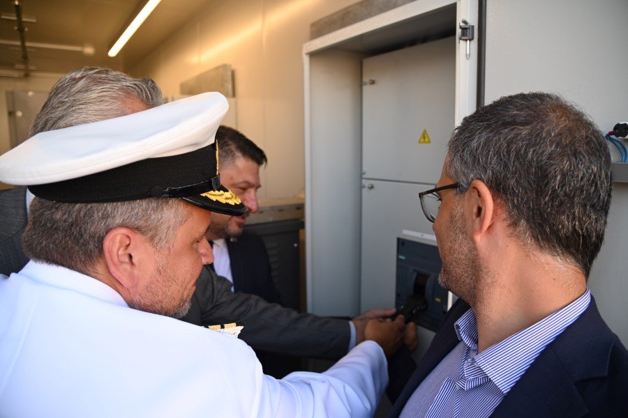 Επιπρόσθετα, ο Υφυπουργός Εθνικής Άμυνας κ. Νικόλαος Χαρδαλιάςκαι ο Διευθύνων Σύμβουλος του Διαχειριστή του Ελληνικού Δικτύου Διανομής Ηλεκτρικής Ενέργειας (Δ.Ε.Δ.Δ.Η.Ε.) κ. Αναστάσιος Μάνος επιθεώρησαν και παρέδωσαν προς χρήση χθες, Πέμπτη 21 Ιουλίου 2022, εγκατάσταση στατού μετατροπέα (converter) επ’ ωφελεία του Πολεμικού Ναυτικού στον λιμένα του Καστελλόριζου.