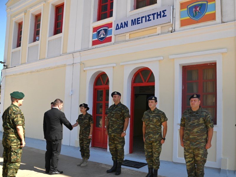 Σήμερα, Παρασκευή 22 Ιουλίου μετέβη στην έδρα της Διοίκησης Άμυνας Νήσου (ΔΑΝ) Μεγίστης, όπου ενημερώθηκε από τον Διοικητή της Συνταγματάρχη Βασίλειο Μήτσιο, για τις τρέχουσες επιχειρησιακές και εκπαιδευτικές δραστηριότητες της Διοίκησης και συνομίλησε με τα στελέχη και τους οπλίτες θητείας. Επίσης, ενημερώθηκε και επιθεώρησε την πρόοδο των εργασιών για την κατασκευή του νέου κτηρίου για τη διαμονή του προσωπικού.