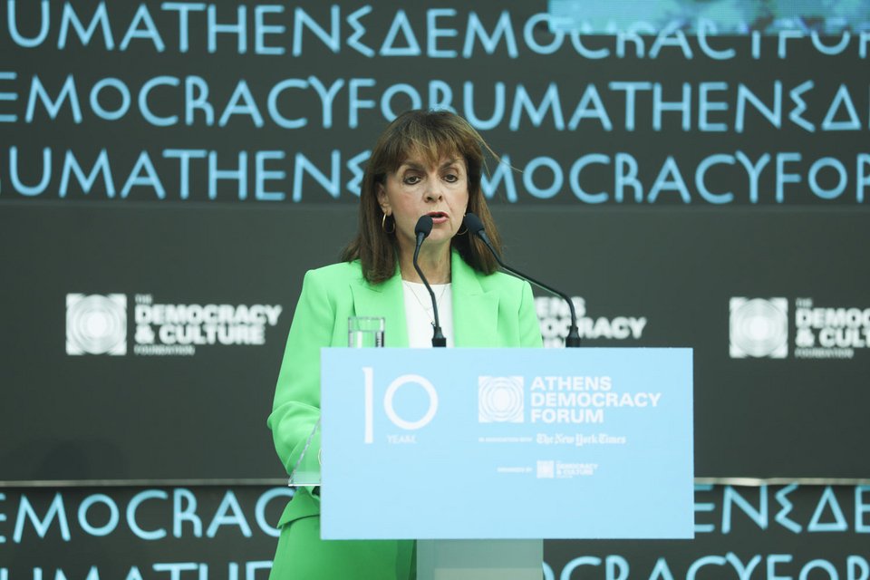 Η Πρόεδρος της Δημοκρατίας, Κατερίνα Σακελλαροπούλου κήρυξε απόψε την έναρξη των εργασιών του 10ου ετήσιου διεθνούς συνεδρίου του «Athens Democracy Forum 2022».