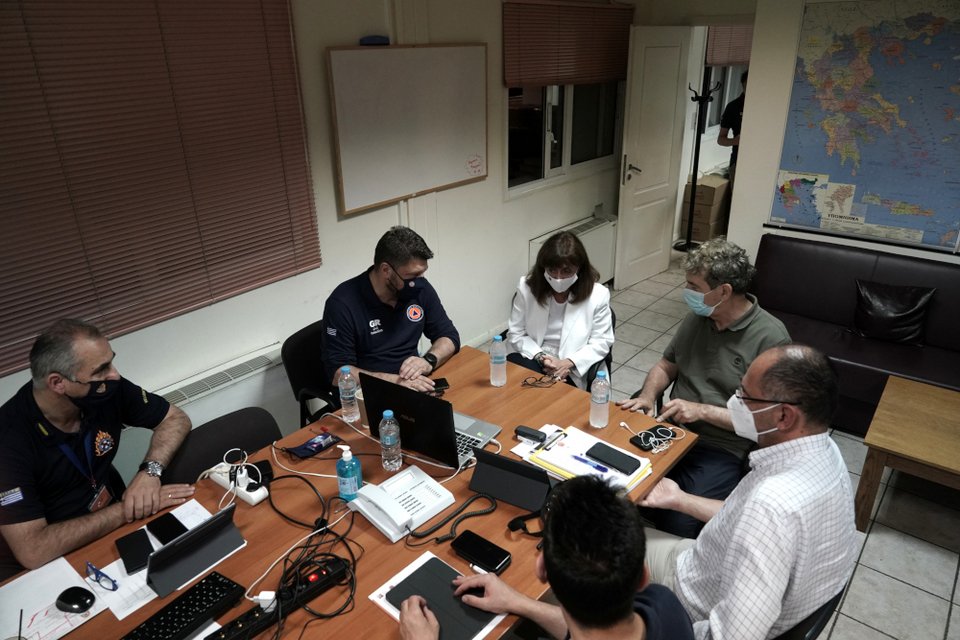Η Πρόεδρος της Δημοκρατίας, Κατερίνα Σακελλαροπούλου, μετέβη νωρίτερα στο Ενιαίο Συντονιστικό Κέντρο Επιχειρήσεων του Πυροσβεστικού Σώματος, στο Χαλάνδρι. Η κυρία Σακελλαροπούλου ενημερώθηκε για τα πύρινα μέτωπα που βρίσκονται σε εξέλιξη σε όλη την Ελλάδα.