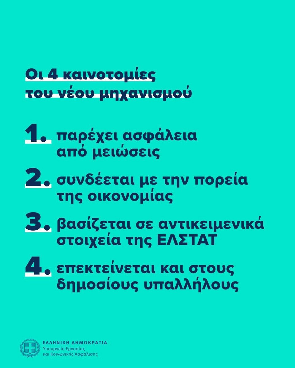 - Διαφάνεια και αξιοπιστία. Το ύψος του κατώτατου μισθού βασίζεται σε αντικειμενικά δεδομένα της ΕΛΣΤΑΤ, ενισχύοντας την εμπιστοσύνη στο σύστημα.