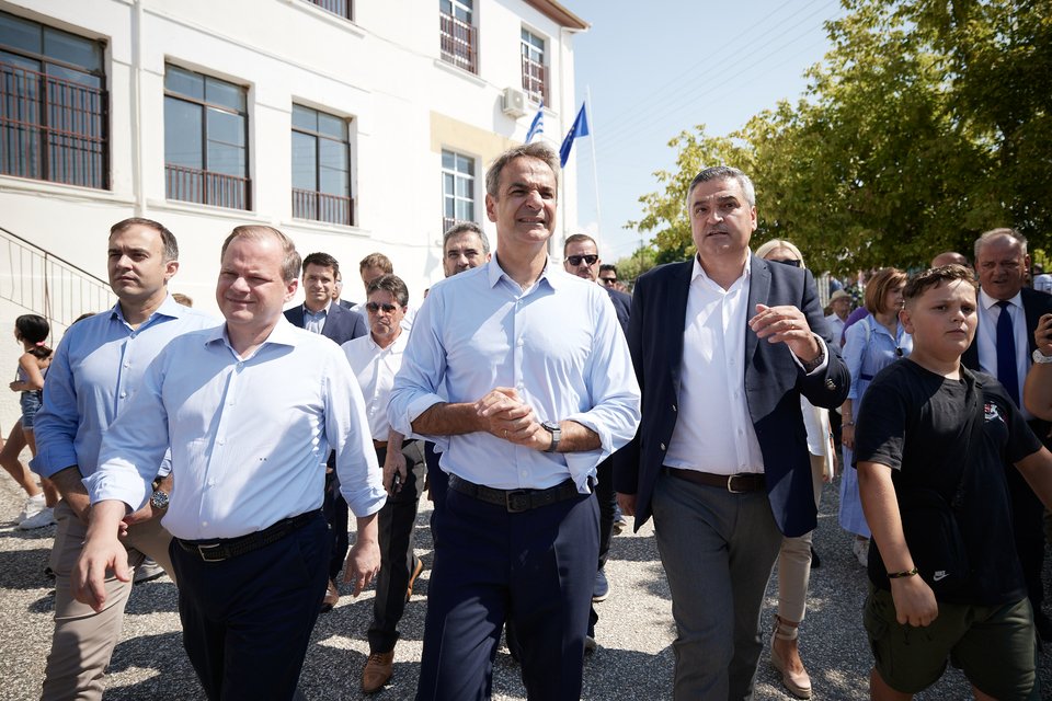 Ο πρωθυπουργός, από τη γενέτειρα του Κωνσταντίνου Καραμανλή, τόνισε ότι «η ΝΔ είναι ισχυρή και απολαμβάνει της εμπιστοσύνης των Ελλήνων», σημειώνοντας πως «στην γκρίνια και στην υπονόμευση των πολιτικών μας αντιπάλων» απαντά με έργα. Σε όλη την περιοδεία βρισκόταν στο πλευρό του ο υπουργός Μεταφορών Κώστας Καραμανλής, κάτι που είχε τη δική του σημειολογία απέναντι στο κλίμα που επιχειρήθηκε να δημιουργηθεί χθες. Μάλιστα, απευθυνόμενος στον κ. Μητσοτάκη, δήλωσε ότι «οι Νεοδημοκράτες είμαστε μια γροθιά μαζί σας για να μπορέσουμε να ξεπεράσουμε με ομοψυχία κυρίως, και με ενότητα, τα μεγάλα προβλήματα του τόπου».