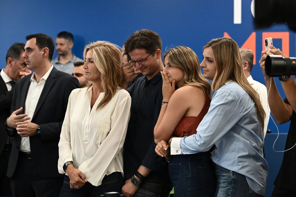 Μόλις βγήκε η εκτίμηση του εκλογικού αποτελέσματος, που διασφαλίζει μια άνετη αυτοδυναμία για τη ΝΔ, η οικογένεια του πρωθυπουργού έπλεε σε πελάγη ευτυχίας. Οι κόρες του, Σοφία και Δάφνη, χαμογελούσαν πλατιά, ενώ ο γιος του, Κωνσταντίνος Μητσοτάκης, ξέσπασε σε κλάματα από τη συγκίνηση.