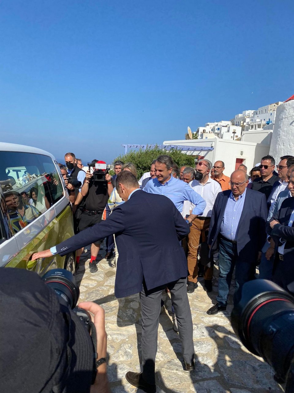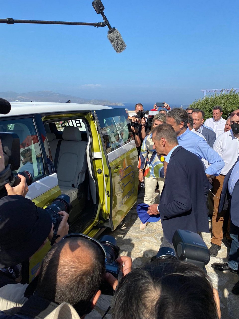 Ο Κ. Μητσοτάκης στην παρουσίαση του πρώτου ηλεκτρικού ασθενοφόρου στην Αστυπάλαια