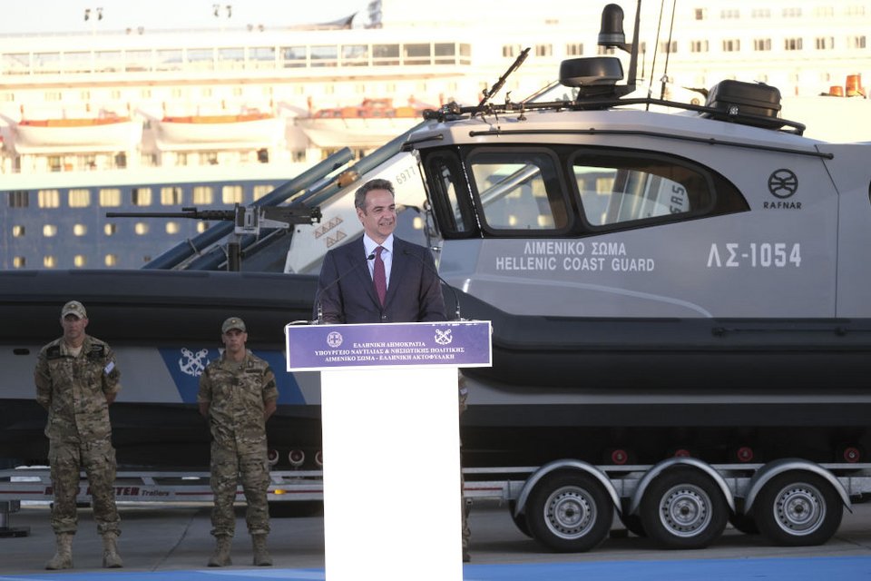 Σε τελετή παράδοσης ταχύπλοου σκάφους στο Λιμενικό Σώμα παρευρέθη το βράδυ της Πέμπτης, ο Κυριάκος Μητσοτάκης.