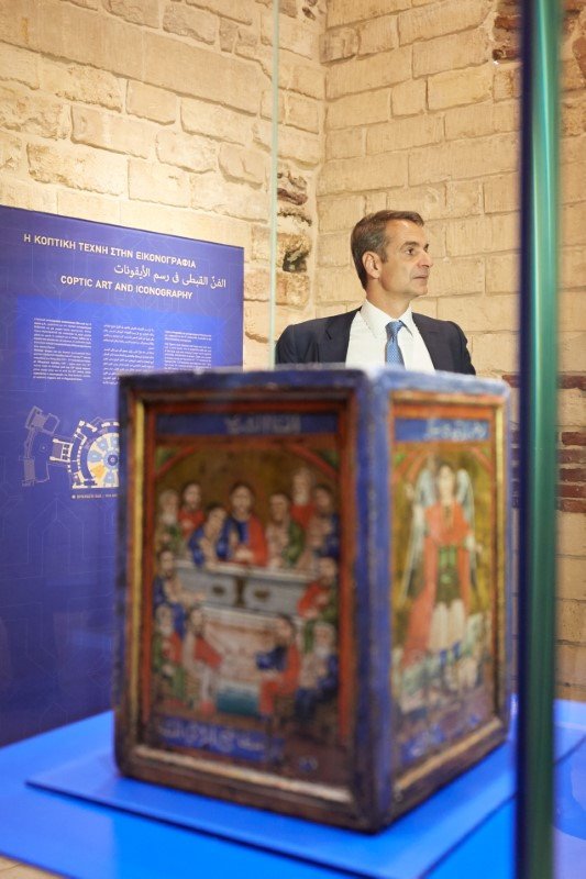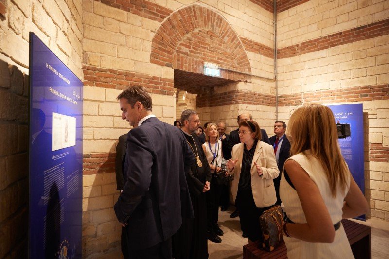 Εντυπωσιασμένη έμεινε η Μαρέβα Μητσοτάκη από την ξενάγηση που της έκανε ο επίσκοπο Βαβυλώνος Θεόδωρο, στην Ιερά Μονή του Αγίου Γεωργίου στο Κάϊρο.