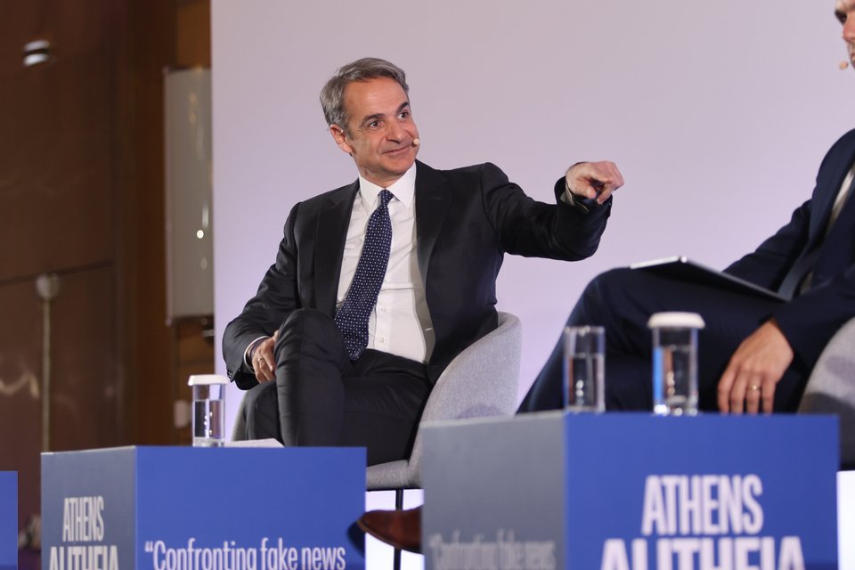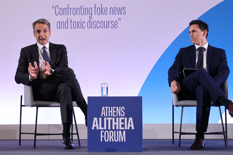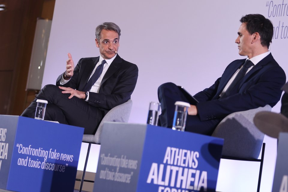 Ο Κυριάκος Μητσοτάκης άφησε στο τέλος την είδηση για τα σόσιαλ στη συζήτηση με τους Γιάννη Θεοχάρη και Γιάννη Πρετεντέρη, στο πλαίσιο του συνεδρίου «Athens Alitheia Forum».