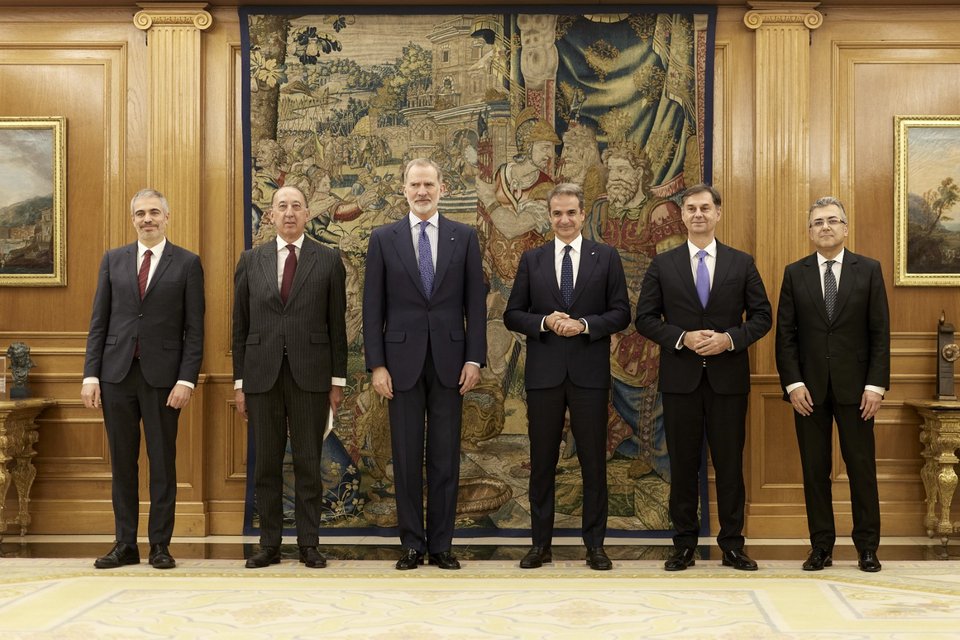 Ο Κ. Μητσοτάκης, ο οποίος πραγματοποίησε την πρώτη επίσημη επίσκεψη Έλληνα πρωθυπουργού στην Ισπανία μετά από 13 χρόνια, συνάντησε τον βασιλιά Φελίπε συνοδευόμενος από ελληνική αντιπροσωπεία.