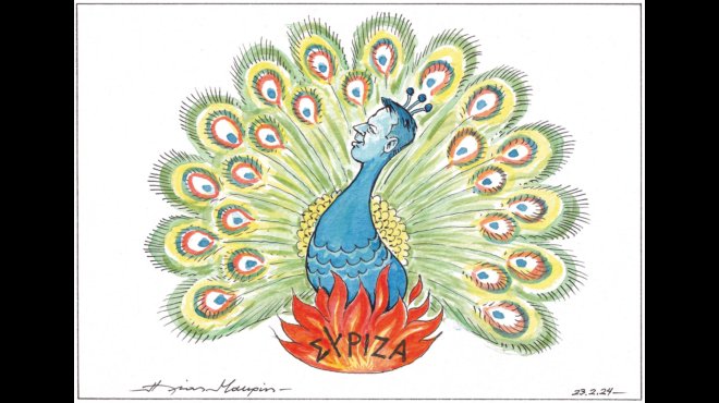 Με καυστικό τρόπο ο σκιτσογράφος της εφημερίδας Καθημερινή, Ηλίας Μακρής, επέλεξε να αποδώσει τις πρόσφατες εξελίξεις στον ΣΥΡΙΖΑ και την αμφισβήτηση του προέδρου του, Στέφανου Κασσελάκη.