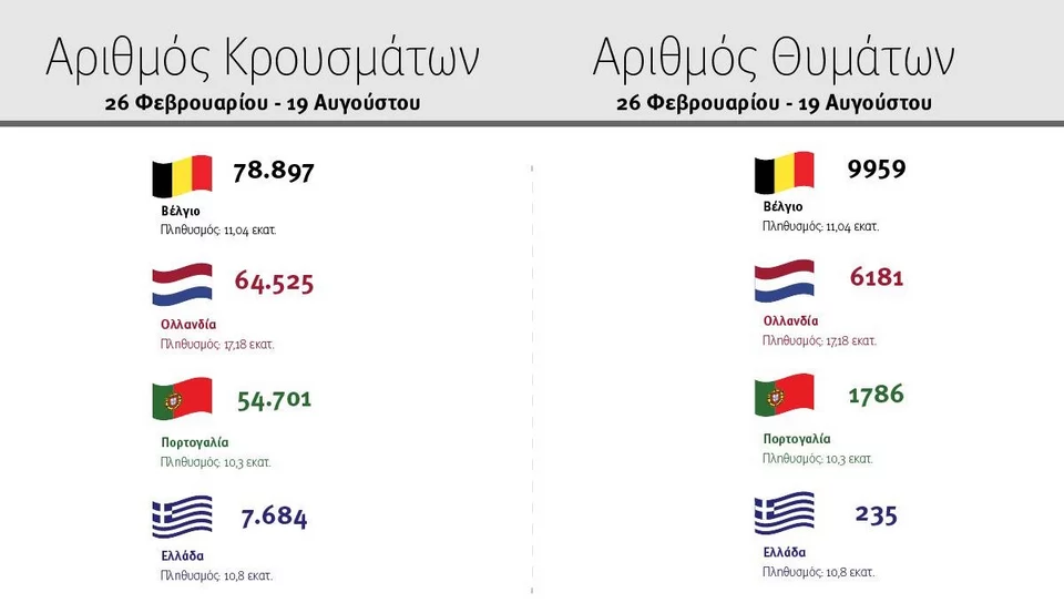 Οι πίνακες με τα κρούσματα και τα θύματα του κορωνοϊού -Σε ποια θέση είναι η Ελλάδα