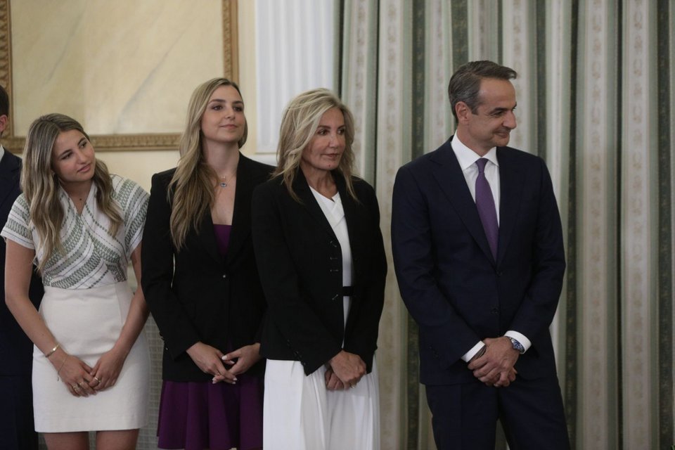 Στο Προεδρικό Μέγαρο, στο πλευρό του Κυριάκου Μητσοτάκη βρέθηκαν η σύζυγός του, τα παιδιά του και οι αδερφές του.