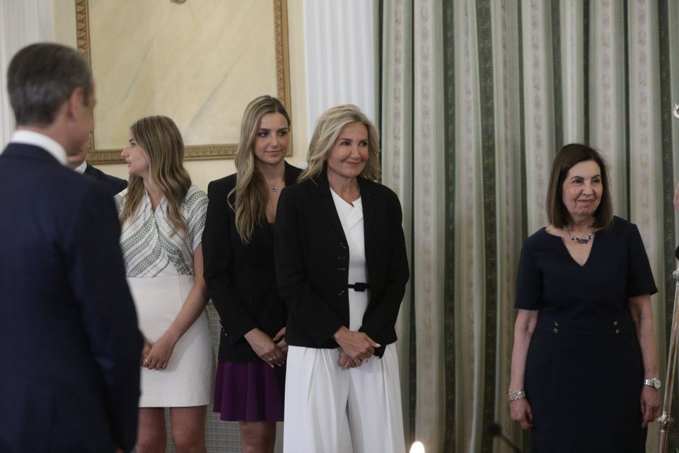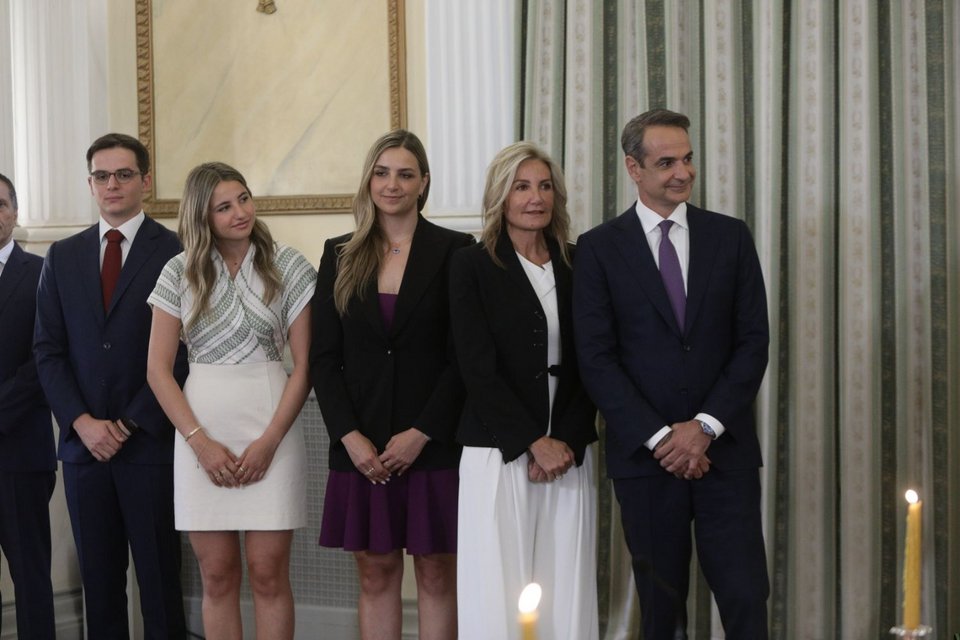 Εκτός από την οικογένειά του, στο Προεδρικό Μέγαρο ήταν και οι τρεις αδελφές του Κυριάκου Μητσοτάκη, Ντόρα Μπακογιάννη και Κατερίνα και Αλεξάνδρα Μητσοτάκη, καθώς και αδελφικοί φίλοι του πρωθυπουργού και της οικογένειάς του.