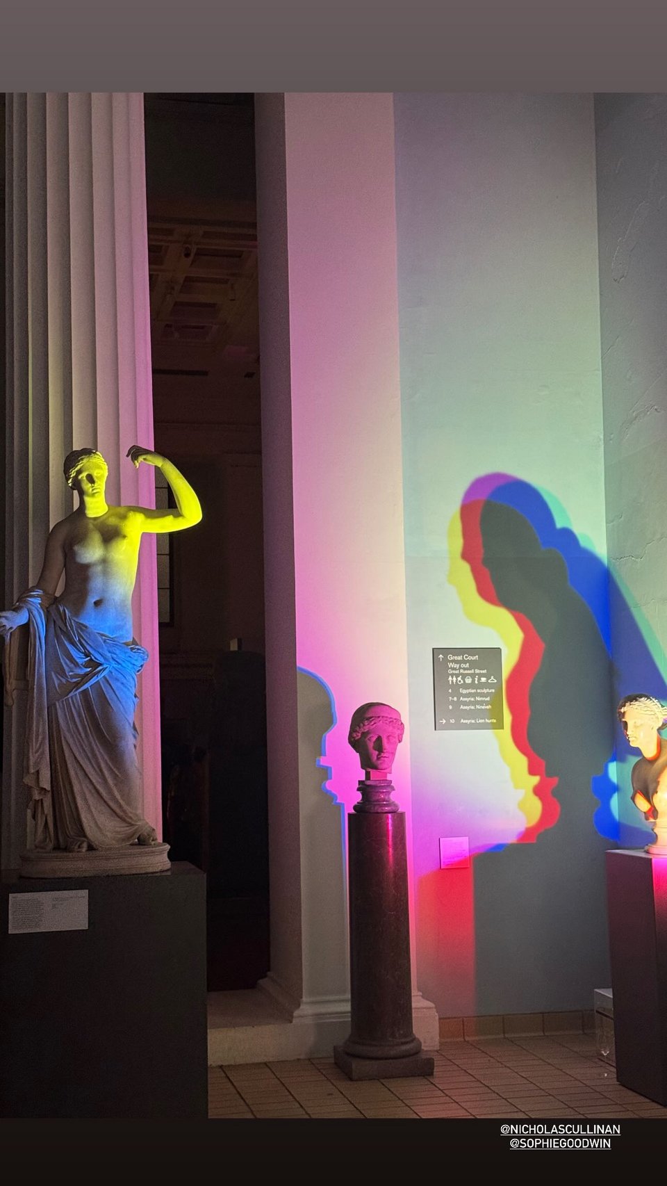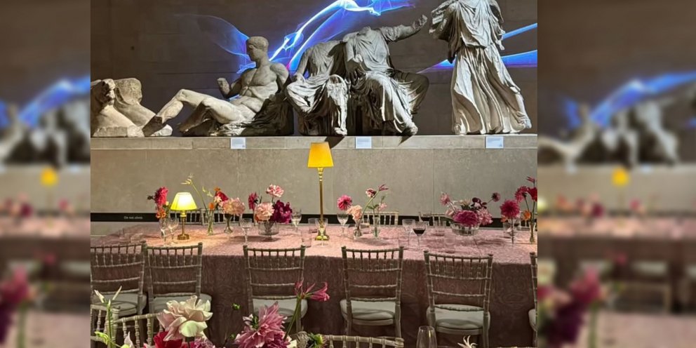 Τα τραπέζια στήθηκαν στις αίθουσες του μουσείου με φόντο τα ελληνικά αγάλματα που αποτελούν σημείο τριβής μεταξύ της Αθήνας και του Λονδίνου, με την Ελλάδα να διεκδικεί την επιστροφή τους και την ένωσή τους με τα Γλυπτά του Παρθενώνα που φιλοξενούνται στο Μουσείο της Ακρόπολης. Σειρά παρεμβάσεων και επαφών με επιδίωξη την επιστροφή τους έχουν διεξαχθεί τα τελευταία χρόνια, χωρίς έως τώρα κάποιο αποτέλεσμα.