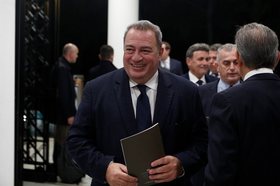 Ο Κυριάκος Μητσοτάκης έφτασε πριν από λίγο χαμογελαστός, συνοδευόμενος από τον κυβερνητικό εκπρόσωπο Παύλο Μαρινάκη, και αντήλλαξε μια σύντομη και μάλλον τυπική χειραψία με τους δύο πρώην πρωθυπουργούς.