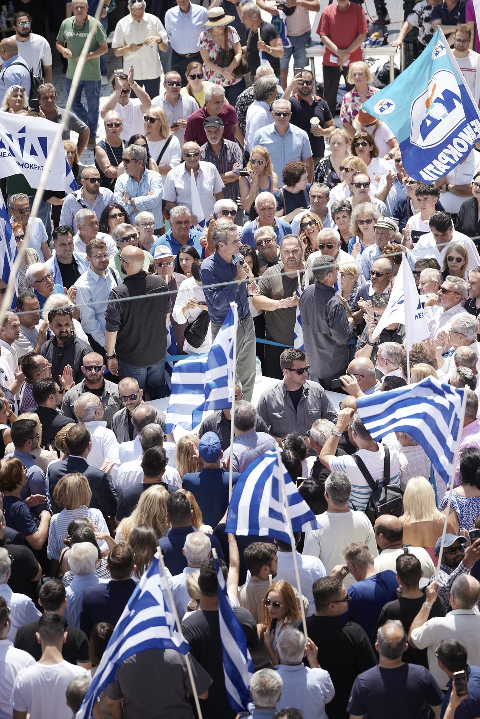 «Έχουμε τον αέρα του νικητή στα πανιά μας. Στοχεύουμε ψηλά, κοιτάμε ψηλά, όμως τα πόδια μας πατάνε πολύ σταθερά στη γη. Ξέρετε, ακούω πολλές φορές αυτή την επιχειρηματολογία από την αντιπολίτευση “μην ψηφίσετε”, λέει, “τη Νέα Δημοκρατία, μήπως τυχόν και η Νέα Δημοκρατία είναι παντοδύναμη την επόμενη μέρα”. Κοιτάξτε να δείτε, ζούμε σε δύσκολους καιρούς. Η χώρα χρειάζεται σήμερα, για να μπορέσει να διασφαλίσει τη θέση την οποία έχει κατακτήσει με πολύ κόπο ως πυλώνα γεωπολιτικής σταθερότητας, μία σταθερή κυβέρνηση την επόμενη μέρα.