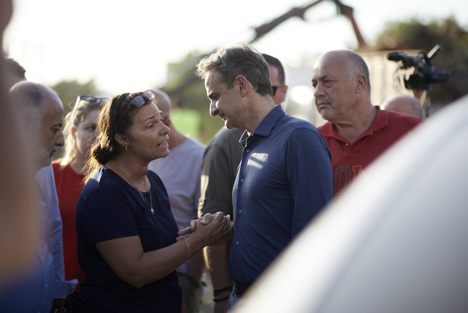 Νωρίτερα, ο Κυριάκος Μητσοτάκης βρέθηκε στην πόλη του Βόλου, στο πλαίσιο περιοδείας που κάνει στις πληγείσες περιοχές της Θεσσαλίας από τη φονική κακοκαιρία Daniel.