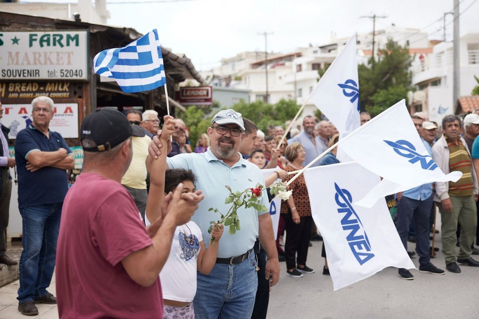 Οι κάτοικοι της Σητείας υποδέχθηκαν τον πρόεδρο της ΝΔ με λύρες, λαούτα και μαντινάδες.
