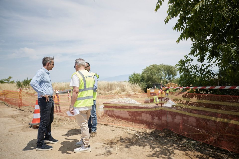 Στη συνέχεια, ο πρωθυπουργός είχε την ευκαιρία να δει έργα αποκατάστασης ζημιών από τα ακραία καιρικά φαινόμενα «Daniel» και «Elias» στο οδικό δίκτυο και σε ρέμα που υλοποιούνται από την ΤΕΡΝΑ, στο πλαίσιο του προγράμματος αποκατάστασης των υποδομών της Θεσσαλίας, και να ενημερωθεί για την πορεία των εργασιών και το χρονοδιάγραμμα ολοκλήρωσής τους. Επίσης, ο Κυριάκος Μητσοτάκης επισκέφθηκε τον αρχαίο ναό του Θαυλίου Διός και ξεναγήθηκε από τους αρχαιολόγους στα ευρήματα.