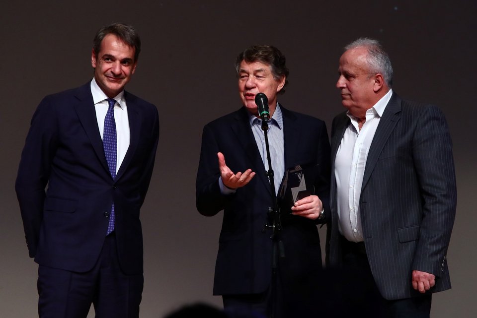 Ο πρωθυπουργός Κυριάκος Μητσοτάκης, συνοδευόμενος από τη σύζυγό του Μαρέβα Γκραμπόφσκι - Μητσοτάκη, παρέστη στην τελετή απονομής των «Gazzetta Awards» στο Μέγαρο Μουσικής και απένειμε βραβείο στον Otto Rehhagel, τον προπονητή που οδήγησε την εθνική ομάδα ποδοσφαίρου στην κατάκτηση του Euro 2004.