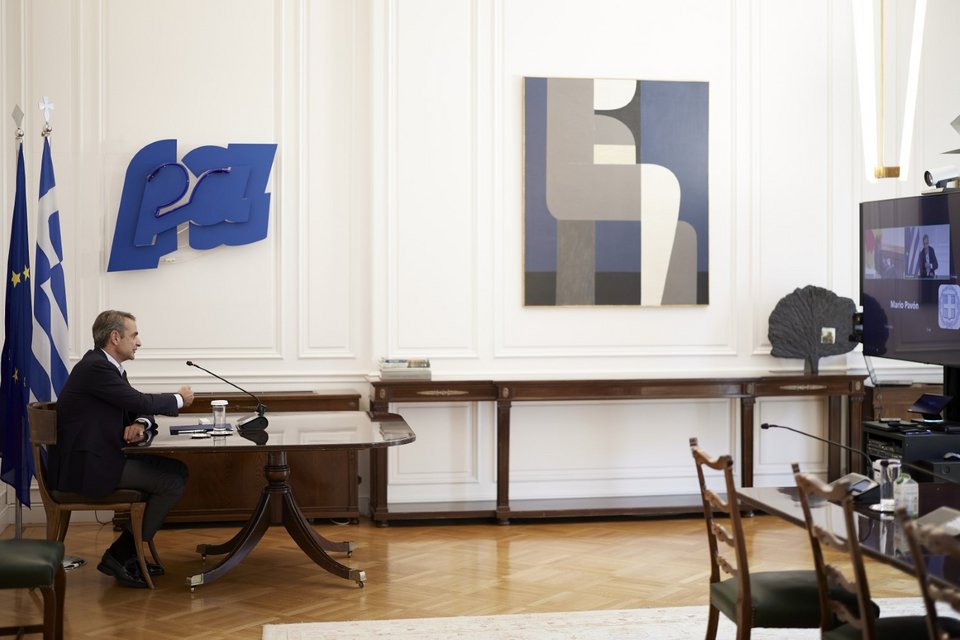 Ο πρωθυπουργός Κυριάκος Μητσοτάκης σε τηλεδιάσκεψη