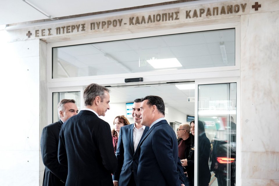 Ο πρωθυπουργός, συνοδευόμενος από τον Υπουργό Υγείας Άδωνι Γεωργιάδη και τον Υφυπουργό Μάριο Θεμιστοκλέους, ξεναγήθηκε από τον Διοικητή του Νοσοκομείου, Αναστάσιο Καρανδρέα, στις νέες, υπερσύγχρονες εγκαταστάσεις των ΤΕΠ, οι οποίες ανακαινίζονται με χρηματοδότηση εξ ολοκλήρου από το Ταμείο Ανάκαμψης και Ανθεκτικότητας.
