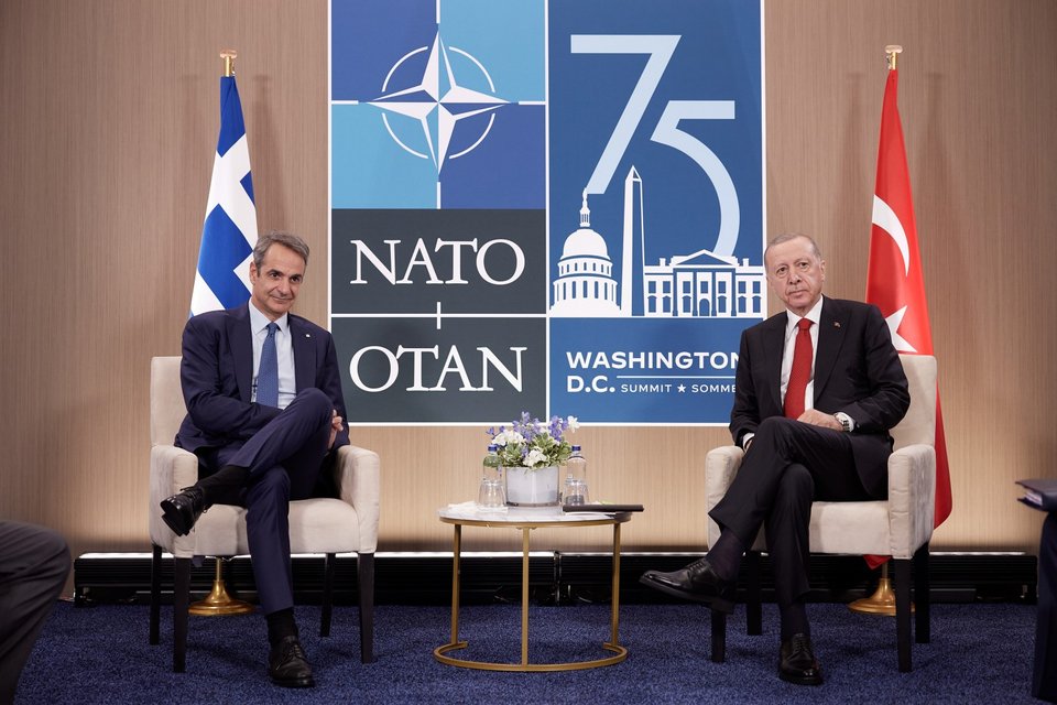 Ολοκληρώθηκε η συνάντηση του Κυριάκου Μητσοτάκη με τον Ρετζέπ Ταγίπ Ερντογάν, στο περιθώριο της συνόδου του ΝΑΤΟ, στην Ουάσιγκτον.