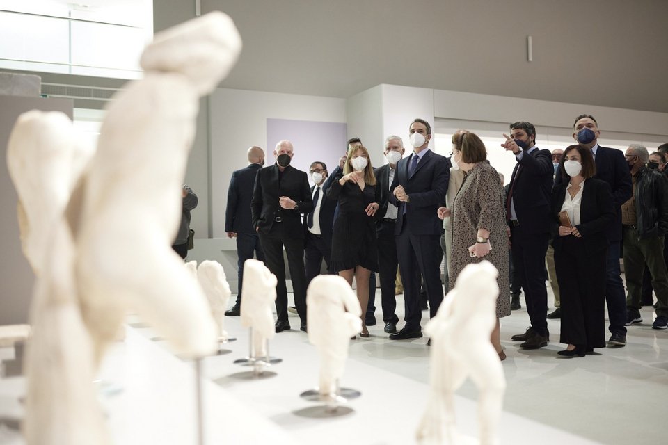 «Ο δεύτερος λόγος που είμαι ιδιαίτερα συγκινημένος -γιατί να το κρύψωμεν άλλωστε- είναι το γεγονός ότι στο Μουσείο αυτό βρήκε τη θέση της η συλλογή Κωνσταντίνου και Μαρίκας Μητσοτάκη, η οποία είχε δωρηθεί από τους γονείς μου στο ελληνικό κράτος πριν από 22 χρόνια. Ο πατέρας μου, πάντα, και η μητέρα μου πίστευαν ότι η συλλογή αυτή πρέπει να αποτελέσει κτήμα του ελληνικού λαού και με πολύ μεγάλο ενθουσιασμό δώρισαν ολόκληρη πρακτικά τη συλλογή τους στο τότε Αρχαιολογικό Μουσείο. Σήμερα, η συλλογή αυτή στεγάζεται στον πρώτο όροφο, σε έναν χώρο αντάξιο της σημασίας του. Και πιστεύω ότι οι γονείς μου θα ήταν πολύ χαρούμενοι και πολύ υπερήφανοι αν είχαν τη δυνατότητα να δουν πώς εκτίθεται αυτή η συλλογή, που γι' αυτούς αποτέλεσε ένα έργο ζωής, άσχετα αν δέχτηκαν πολύ σκληρές επιθέσεις εκείνη την εποχή γι' αυτή τους την πράξη. Και πάλι, λοιπόν, συγχαρητήρια και να είναι τυχερό και καλορίζικο το νέο μας Μουσείο.