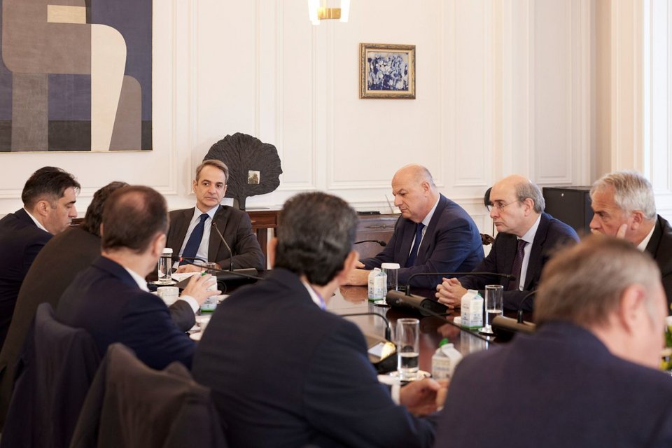Ο πρωθυπουργός Κυριάκος Μητσοτάκης συναντήθηκε την Πέμπτη στο Μέγαρο Μαξίμου με μέλη του Διοικητικού Συμβουλίου της Εθνικής Ένωσης Αγροτικών Συνεταιρισμών.