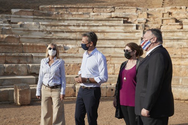 Ο πρωθυπουργός Κυριάκος Μητσοτάκης και ο υπουργός Εξωτερικών των Ηνωμένων Πολιτειών της Αμερικής Mike Pompeo, συνοδευόμενοι από τις συζύγους τους, Μαρέβα Γκραμπόφσκι-Μητσοτάκη και Susan Pompeo, επισκέφθηκαν τον αρχαιολογικό χώρο της Αρχαίας Απτέρας, στα νοτιοανατολικά του Κόλπου της Σούδας, στην Κρήτη.
