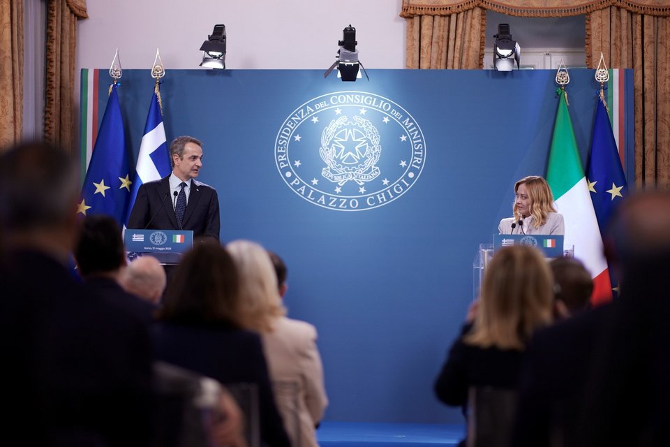 «Αξιότιμη κυρία Πρωθυπουργέ, αγαπητή Giorgia, σε ευχαριστώ για τα θερμά σου λόγια και για την πολύ ζεστή φιλοξενία που μας επιφύλαξες εσύ και η ιταλική αντιπροσωπεία στη Ρώμη. Νομίζω ότι όλοι αντελήφθησαν ότι σήμερα δεν είχαμε απλά μία τυπική διπλωματική συνάντηση, αλλά μία πραγματικά ουσιαστική ευκαιρία να συντονίσουμε τον βηματισμό μας σε όλα τα επίπεδα, με πολύ μεράκι, όπως είπε και η Giorgia, και με πολύ καλή διάθεση να ανταλλάξουμε απόψεις για όλα τα μείζονα ζητήματα που μας απασχολούν: τις γεωπολιτικές ανακατατάξεις, τη μετανάστευση, την ασφάλεια, την ενέργεια, την κλιματική κρίση.