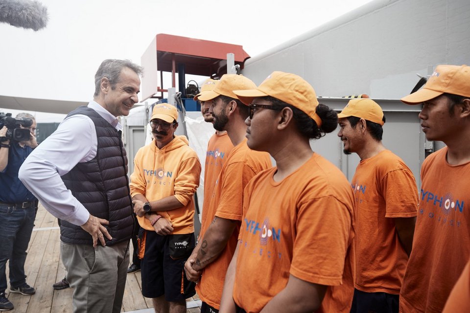 Το πλοίο «Typhoon», το οποίο από το 2019 έχει απομακρύνει απόβλητα από σχεδόν το σύνολο της ελληνικής ακτογραμμής, επισκέφθηκε στον Όρμο του Φαλήρου ο πρωθυπουργός Κυριάκος Μητσοτάκης.