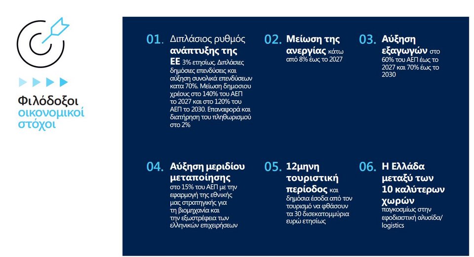 - Αύξηση μεριδίου μεταποίησης, με εξαγωγές στο 60% του ΑΕΠ το 2027