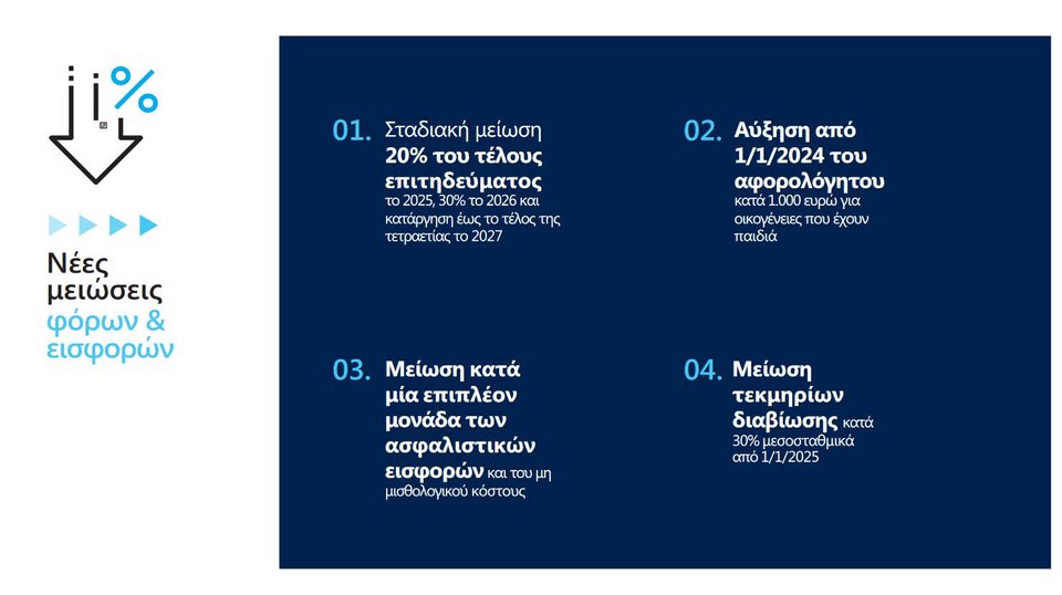 - 1/1/2025 μειώνουμε τα τεκμήρια διαβίωσης κατά 30% μεσοσταθμικά