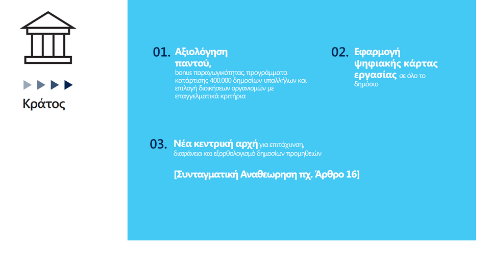 Αναφέρθηκε ακόμη στη διαχείριση του ανθρώπινου δυναμικού στο Δημόσιο.