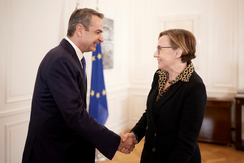 Ο πρωθυπουργός Κυριάκος Μητσοτάκης συναντήθηκε στο Μέγαρο Μαξίμου με τη διευθύνουσα σύμβουλο του Ομίλου Vodafone, Margherita Della Valle.