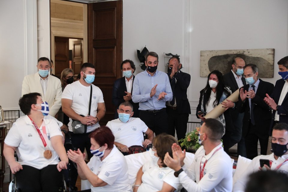 Τα μέλη της ελληνικής αποστολής που συμμετείχε στους Παραολυμπιακούς Αγώνες του Τόκιο και κατέκτησε 11 μετάλλια υποδέχτηκε το απόγευμα της Τρίτης (7/9), στο Μέγαρο Μαξίμου, ο πρωθυπουργός Κυριάκος Μητσοτάκης.