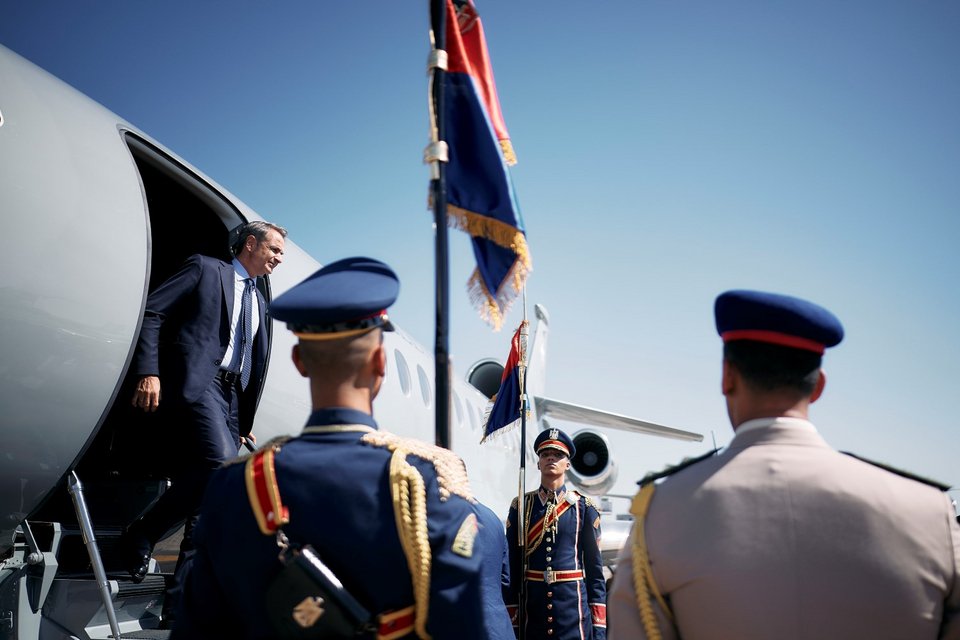 Ο Αμερικανός πρόεδρος προσγειώθηκε στην Αίγυπτο λίγα λεπτά πριν από τις 17:30, ενώ ο Κυριάκος Μητσοτάκης έφτασε με το πρωθυπουργικό αεροσκάφος λίγες ώρες νωρίτερα και συγκεκριμένα στις 14:00.