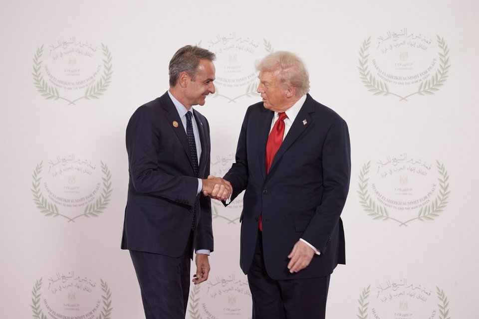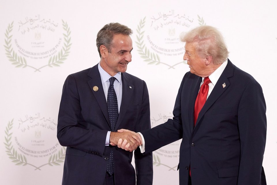 Θερμή χειραψία και σύντομο τετ α τετ είχε στην Αίγυπτο ο πρωθυπουργός Κυριάκος Μητσοτάκης με τον πρόεδρο των ΗΠΑ, Ντόναλντ Τραμπ.