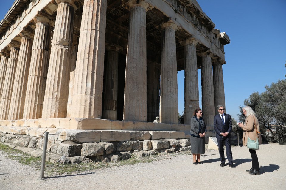 Την Αρχαία Αγορά επισκέφθηκε το μεσημέρι, όπως προβλεπόταν στο πρόγραμμά του, ο Άντονι Μπλίνκεν, μαζί με την υπουργό Πολιτισμού, Λίνα Μενδώνη.