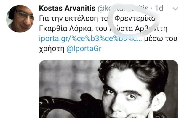 Το κακό είναι πως ο άνθρωπος που έγινε πρωτοκλασάτο τηλεοπτικό πρόσωπο και κατόπιν καλοπληρωμένο μέλος του ευρωκοινοβουλίου επειδή αποκάλεσε πρώην πρωθυπουργό «μαλάκα», μάλλον έχει τόση σχέση με τον εκτελεσθέντα Ισπανό ποιητή και συγγραφέα, όση έχει και με την αλήθεια στο δημόσιο λόγο. Έτσι, κατέληξε να ποστάρει την τιμητική του ανάρτηση δίνοντας στον ποιητή λάθος όνομα! Αντί για Φεντερίκο, ο Αρβανίτης είπε να φανεί γαλαντόμος και να προσθέσει κι ένα ρω παραπάνω, κι έγραψε τον Λόρκα ΦΡεντερίκο. Αφού ακούγεται γνώριμο, σκέφτηκε, σωστό θα είναι!
