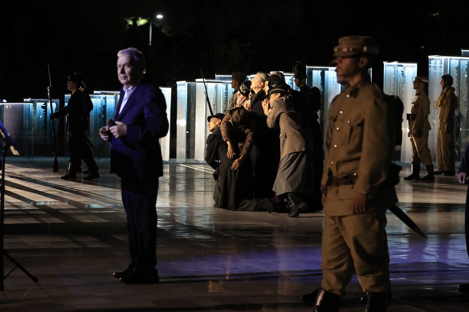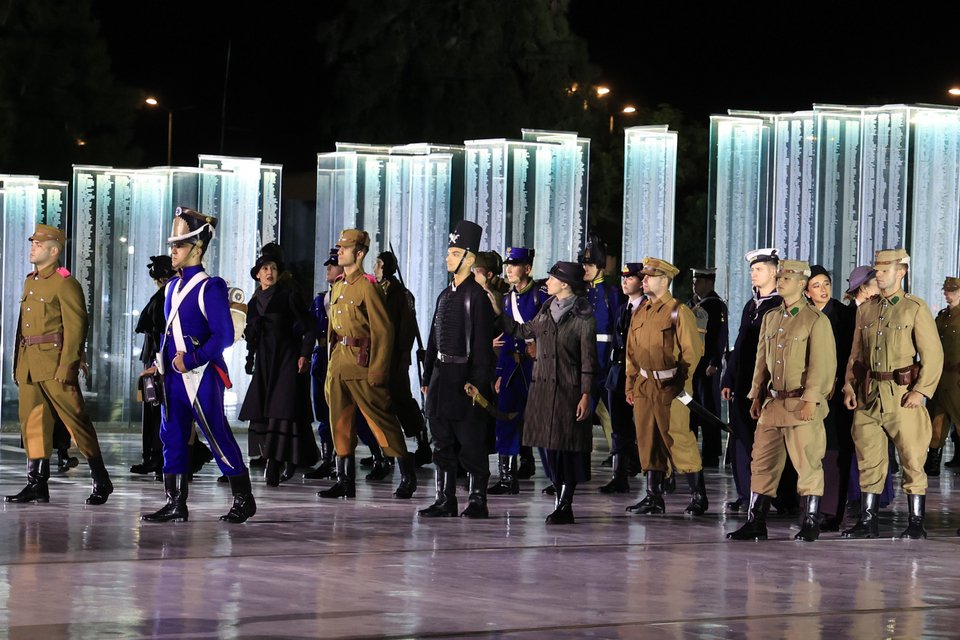 Η τελετή ξεκίνησε με τον Ακάθιστο Ύμνο από παιδική χορωδία και ακολούθησε ο Άγγελος Παπαδημητρίου να τραγουδά «Της Ελλάδος τα Παιδιά»μ ενώ την ίδια ώρα χορογραφίες από ηθοποιούς ήταν σε εξέλιξη, δίνοντας εικόνα στην αφήγηση των παρουσιαστών. Στη συνέχεια, ο Μανώλης Μητσιάς τραγούδησε το «Μητέρα κι αδελφή».