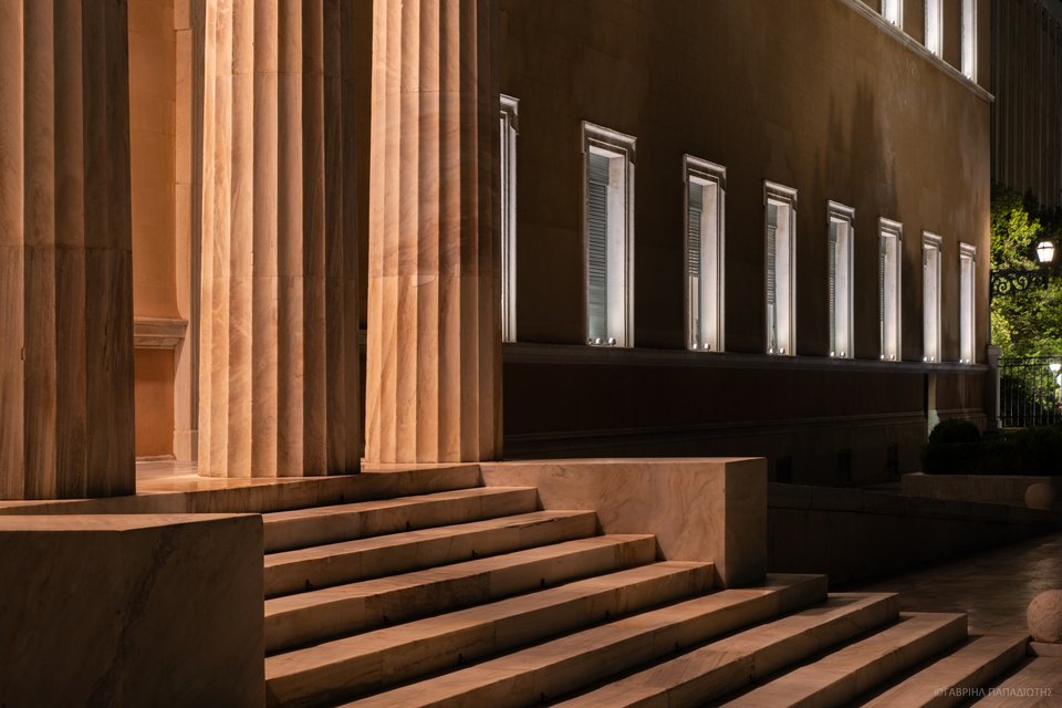 Η νέα μελέτη φωτισμού στοχεύει στην αισθητική αναβάθμιση της νυχτερινής εικόνας του Μεγάρου της Βουλής και του περιβάλλοντος χώρου λαμβάνοντας υπόψη την περιβαλλοντική υπευθυνότητα και τη βιωσιμότητα.