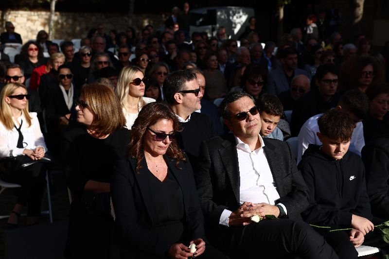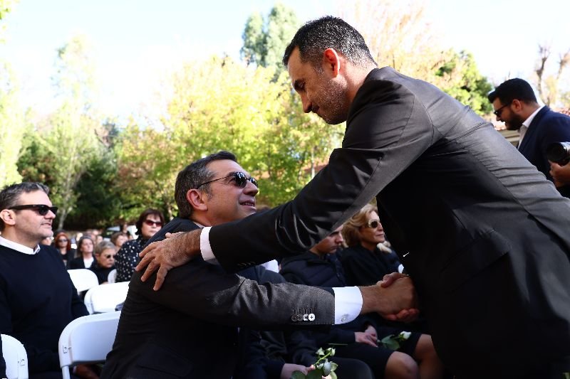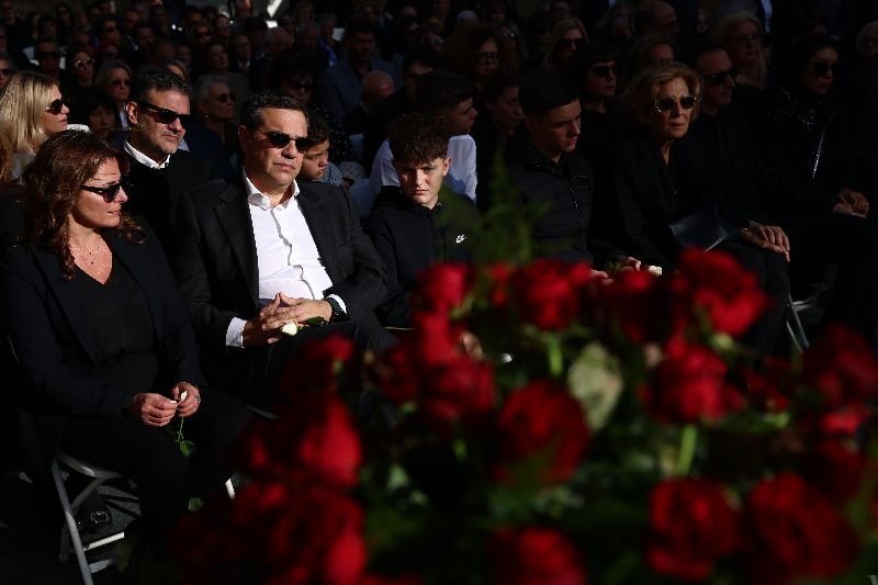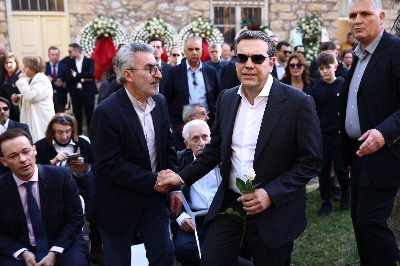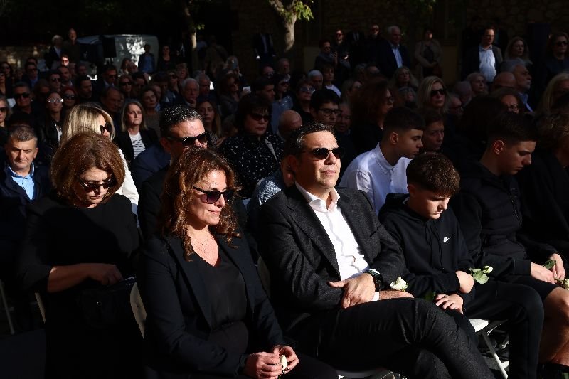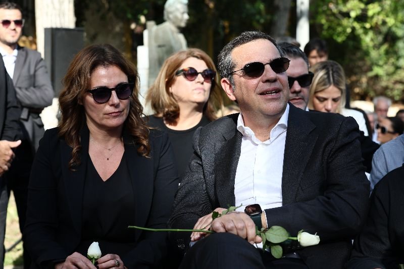 Ο Αλέξης Τσίπρας, που θεωρούσε «μέντορά» του τον εκλιπόντα, έφτασε ντυμένος στα μαύρα μαζί με τη σύντροφό του Μπέττυ Μπαζιάνα και τα δύο τους παιδιά, Ορφέα-Ερνέστο και Φοίβο-Παύλο, στο Πάρκο Ελευθερίας.